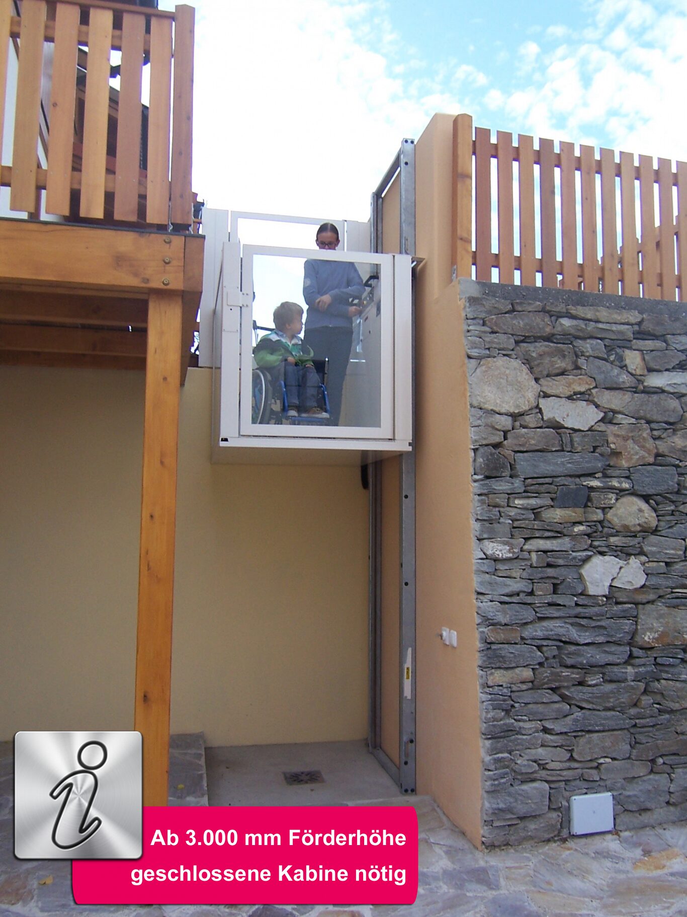 Witterungsbeständige Materialien, VSG-Verglasung, Überlastschutz und Notrufsystem