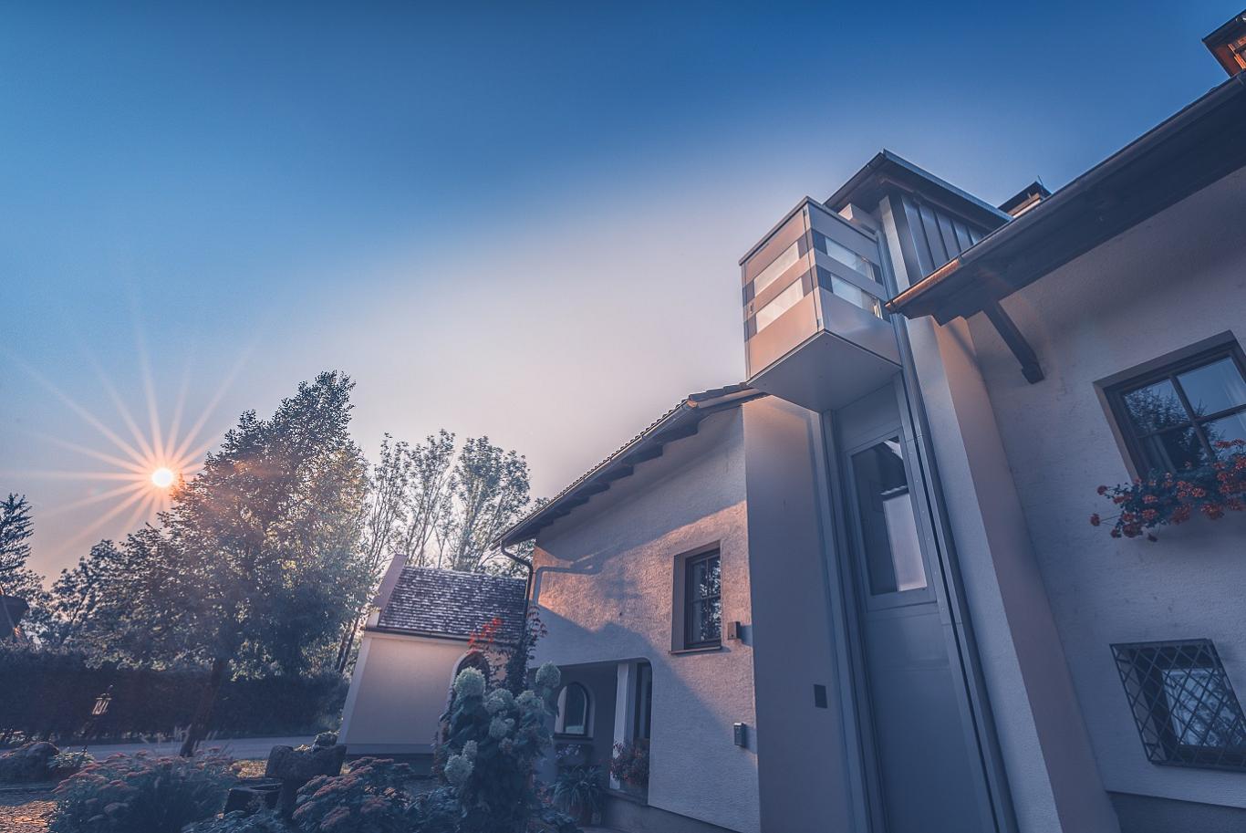 Der Homelift QuattroPorte ist die ideale Wahl, wenn Sie Wert auf hochwertige Optik, fortschrittliche Technik und minimalen Platzbedarf legen. Der Lift wurde speziell für die Außenmontage an privaten Wohnhäusern konzipiert und bietet mit seinen großen Panoramascheiben einen beeindruckenden Blick während der Fahrt – ohne Schachtgrube, ohne Maschinenraum.